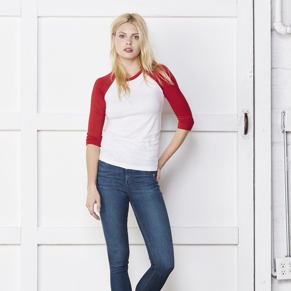 Tri-Blend 3/4 Sleeve Baseball T-Shirt - White/red