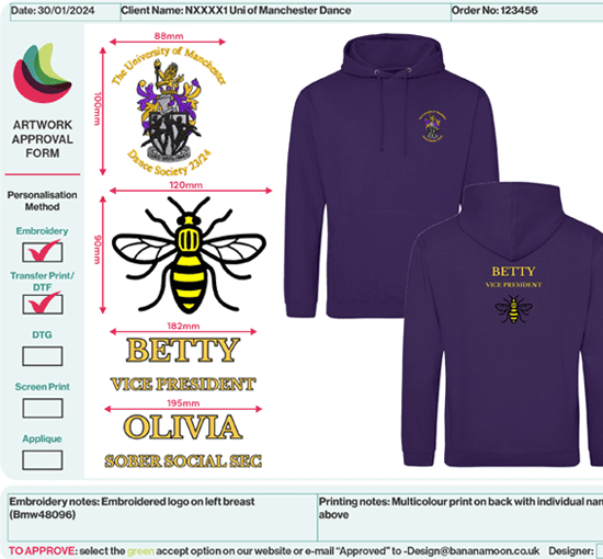 Banana Moon will not be liable for any errors not highlighted before hitting the approved button.