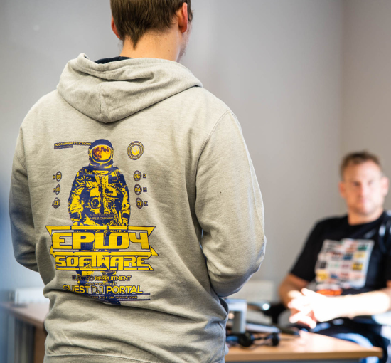 The team at Eploy selected a choice of t-shirts, pullover hoodies, zip hoodies and joggers, in a variety of colour themes. Working with their fantastic designs, we then provided detailed artwork to demonstrate how each individual design would look. Eploy then put together a simple workwear catalogue of the branded garments with each member of the team allocated a credit to spend as they wished. This creative idea enabled everyone to put together their own individual look in the workplace whilst ensuring a unified Eploy brand identity.