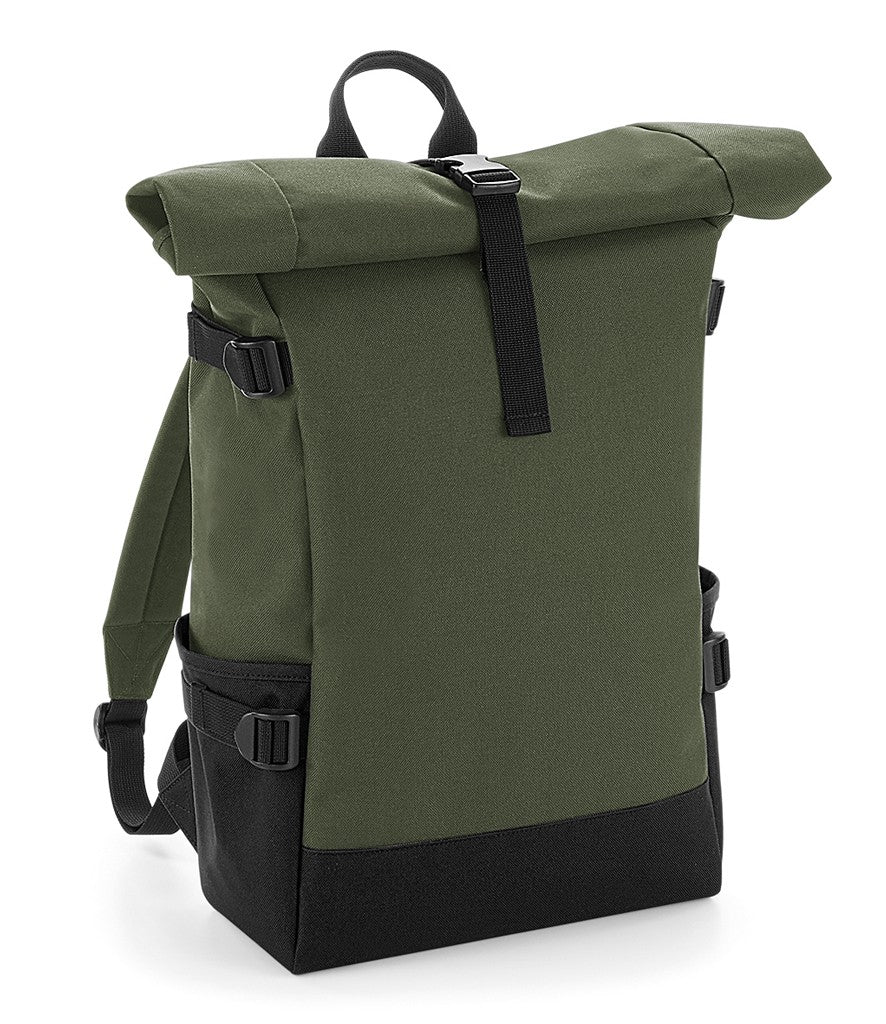 Block Roll-Top Backpack - Olive green/black