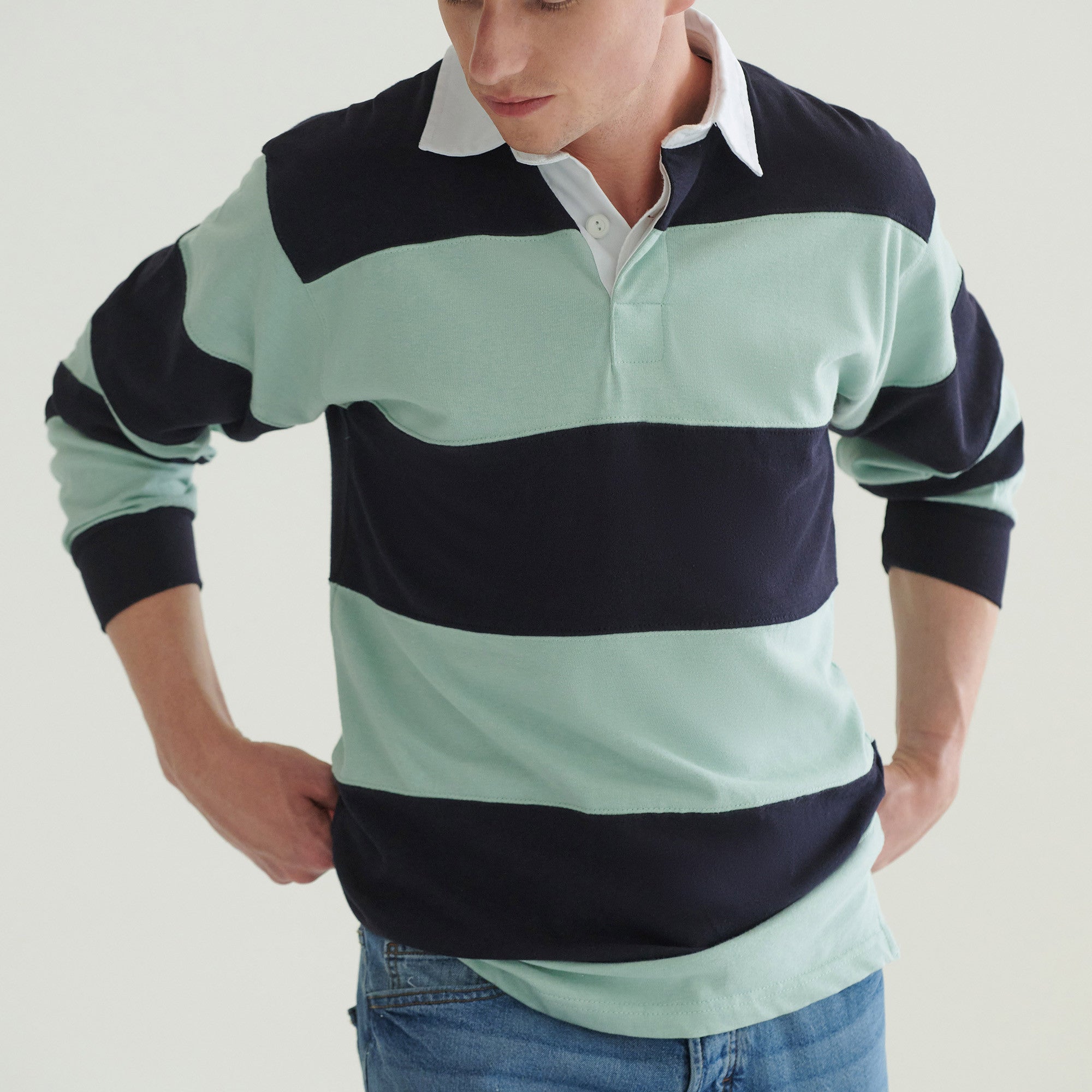 Sewn Stripe Long Sleeve Rugby Shirt